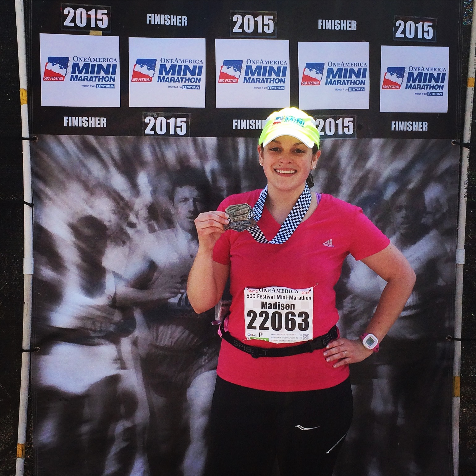 This past weekend I ran the Indianapolis 500 Festival Mini Marathon. It’s the biggest half marathon in the world with roughly 40,000 people participating. It’s a pretty big deal around Indy to run the race, even when everyone and their sister is doing it. I mean, 13.1 miles is quite a feat for most people. I ran it for the first time last year and ran it again this year. My official time was one minute and 16 seconds slower than last year, but I blame two bathroom breaks and the unexpected heat that I hadn’t yet trained in. Also, my GPS watch said I was faster than last year, so there.